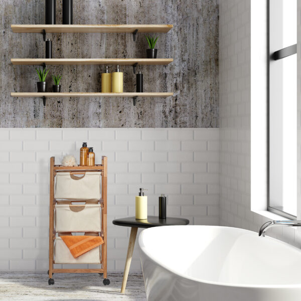 Vonios Lentyna ant Ratukų su Skalbinių Krepšeliu