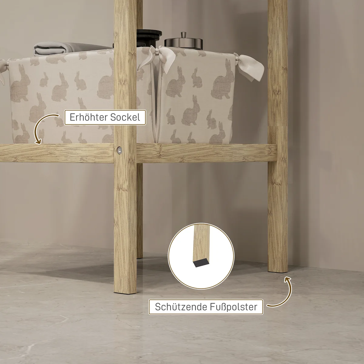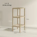 ✔ Trijų lygių medinės lentynos maksimaliai padidina būtiniausių daiktų laikymo vietą