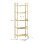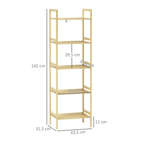Patirkite HOMCOM bambukinės vonios lentynos eleganciją: stilingas, laisvai pastatomas laikymo sprendimas su apsauga nuo apsivertimo, kad būtų užtikrintas didesnis saugumas. Pagaminta iš vandeniui atsparaus bambuko, šioje universalioje vonios lentynoje yra penkios individualiai pritaikomos lentynos, kurios puikiai pritaikytos jūsų poreikiams ir puikiai papildys bet kurį vonios kambarį.