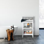 - Erdvumas: Dvi atviros lentynos suteikia daug vietos didesniems daiktams, tokiems kaip rankšluosčiai ar knygos.