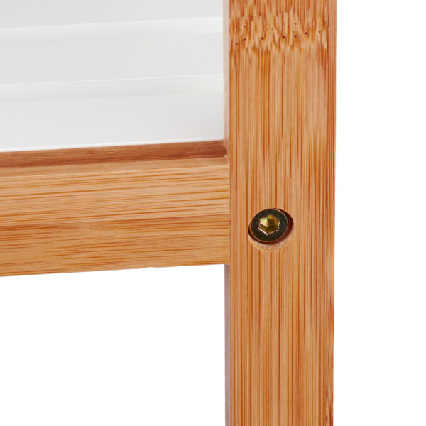 - Aukštos kokybės medžiagos: Tvirtas baltas MDF ir natūralus bambukas sukuria vizualiai įspūdingą ir patvarų baldą.