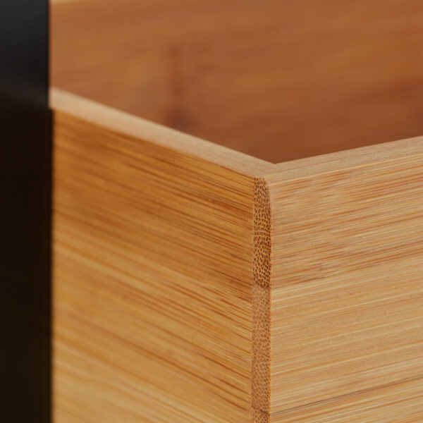 - Medžiagos: Lentynos pagamintos iš aukštos kokybės bambuko, o rėmas – iš tvirto juodo metalo, užtikrinančio ilgaamžiškumą ir stabilumą.