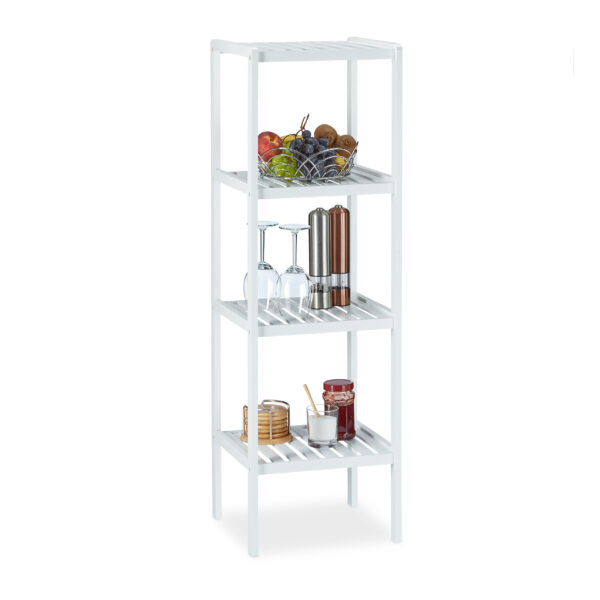 Bambukinė Baltos Spalvos Vonios Lentyna su 4 Lentynomis