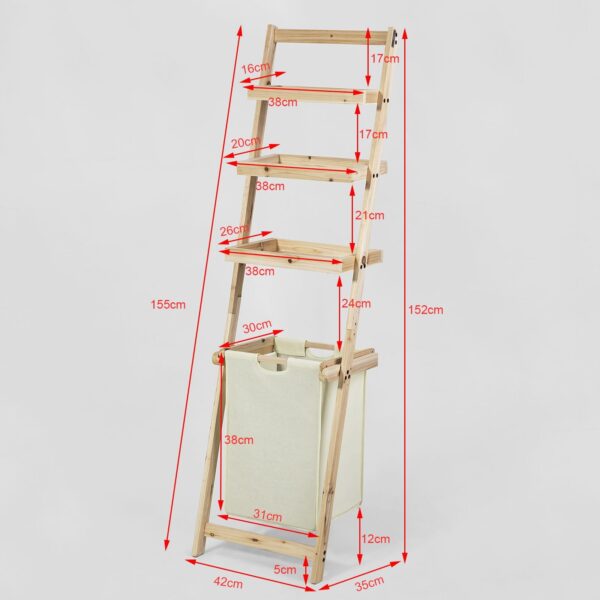 Vonios lentyna su skalbinių krepšeliu 155x42x35 cm, šviesiai rudos/smėlio spalvos, yra puikus sprendimas jūsų vonios kambario organizavimui. Ši lentyna padės jums paversti stresines akimirkas vonios kambaryje į malonią harmoniją, suteikdama papildomą vietą daiktų laikymui, padėjimui ir darbui.