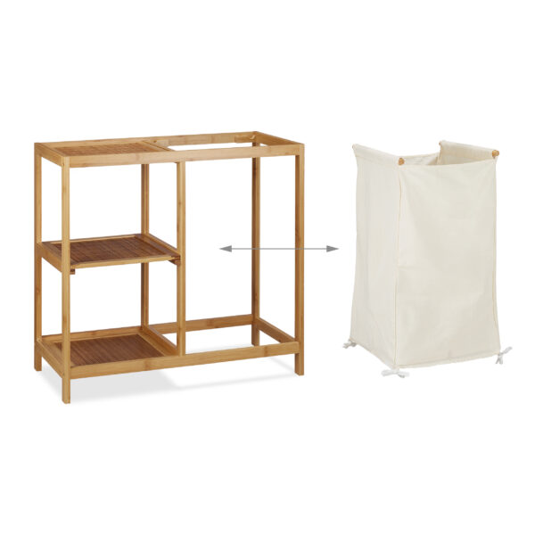 Ieškote praktiško ir stilingo sprendimo savo vonios kambariui? Mūsų šviesiai rudos/smėlio spalvos bambukinė vonios lentyna su skalbinių krepšeliu yra būtent tai, ko jums reikia! Ši lentyna ne tik padės sutaupyti vietos, bet ir taps elegantišku jūsų vonios kambario akcentu.