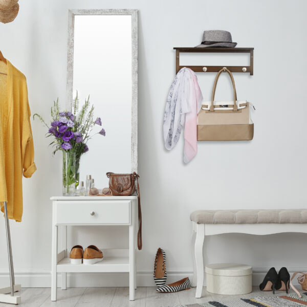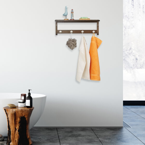 Praturtinkite savo vonios kambarį elegancija ir funkcionalumu su šia išskirtine sienine lentyna. Jos tamsiai rudos ir sidabrinės spalvos derinys suteikia modernų ir stilingą akcentą, puikiai derantį prie įvairių interjero stilių.