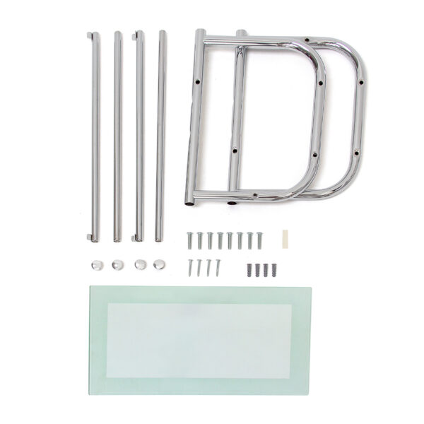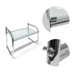 - Tvirta stiklinė lentyna: Didelė lentyna pagaminta iš grūdinto stiklo, suteikianti pakankamai vietos mažiems buteliukams, kremams ir kitiems vonios reikmenims.