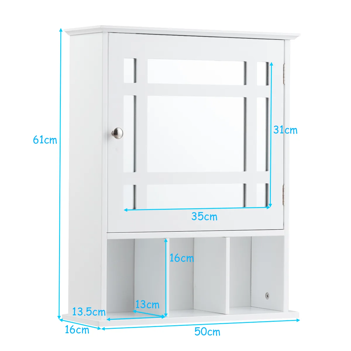 - Bendri matmenys: 50 x 16 x 61 cm (plotis x gylis x aukštis)