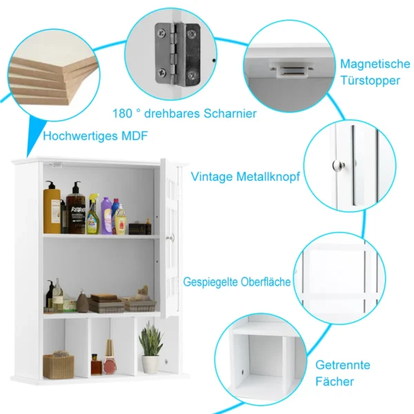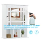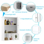 Vonios sieninė spintelė su veidrodžiu 50x16x61 cm yra praktiškas sprendimas vonios kambario organizavimui. Baltos spalvos spintelė pagaminta iš MDF medžiagos, atspari drėgmei, todėl puikiai tinka drėgnoms patalpoms. Spintelė leidžia patogiai laikyti įvairius vonios reikmenis ir užtikrina tvarką.