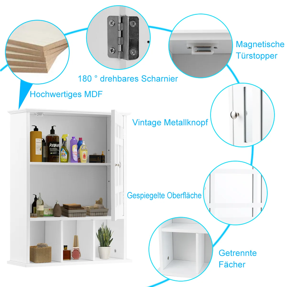 - 1 x vonios spintelė su veidrodžiu