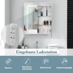 Vonios sieninė spintelė su veidrodžiu 60×68,5×13 cm, baltos spalvos, yra funkcionalus ir praktiškas sprendimas vonios kambario erdvei pagerinti. Integruotas LED apšvietimas su reguliuojamu ryškumu ir spalvų temperatūra leidžia pritaikyti apšvietimą pagal poreikį, o veidrodis su anti-raso funkcija užtikrina aiškų atspindį net drėgnoje aplinkoje.