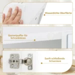 - Patikimi vyrių mechanizmai su minkšto uždarymo funkcija saugiam ir tylų durelių uždarymui.