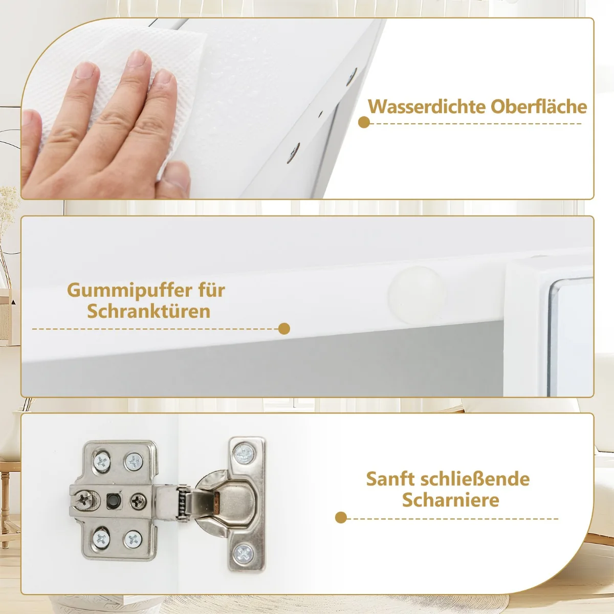 - 2 veidrodinės durys, kuriose įmontuotas didelės raiškos veidrodis asmeninei priežiūrai.