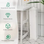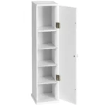 Vonios spintelė 17x16x69 cm yra kompaktiškas ir praktiškas sprendimas vonios kambario erdvės tvarkymui. Baltos spalvos spintelė pagaminta iš MDF medžiagos, kuri užtikrina tvirtumą ir atsparumą drėgmei. Dėl reguliuojamų lentynų ji pritaikoma įvairiems saugojimo poreikiams.