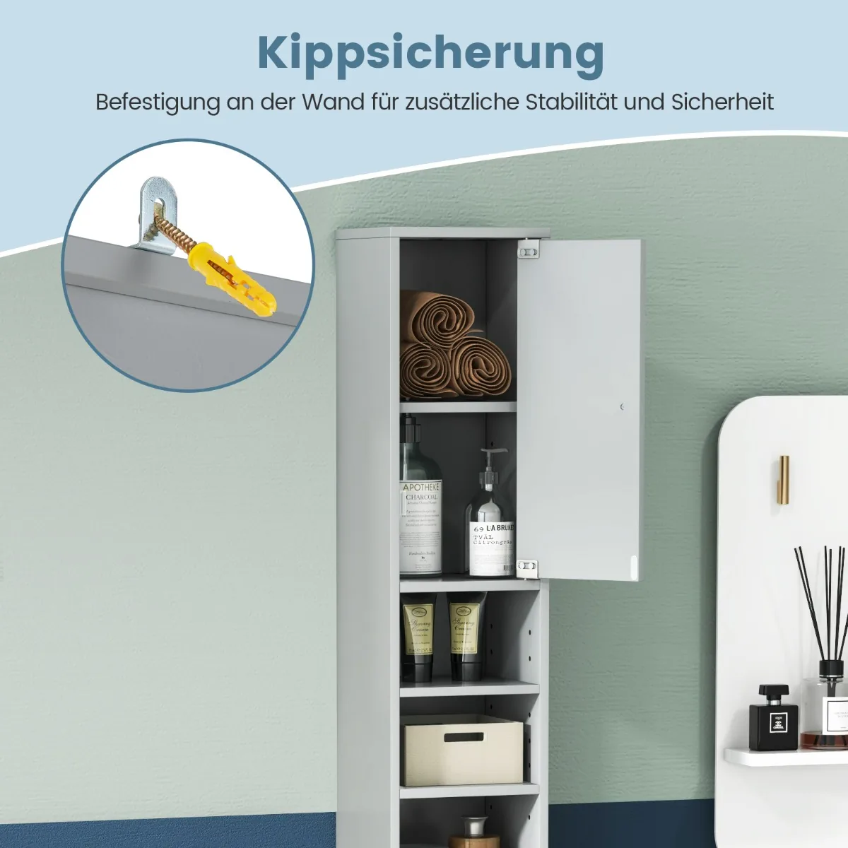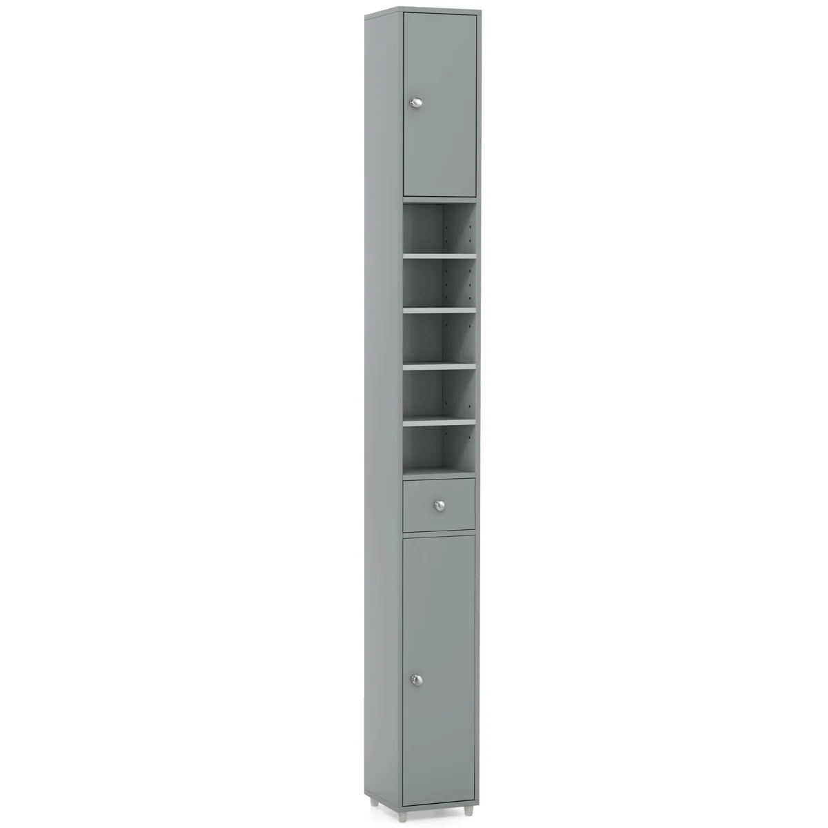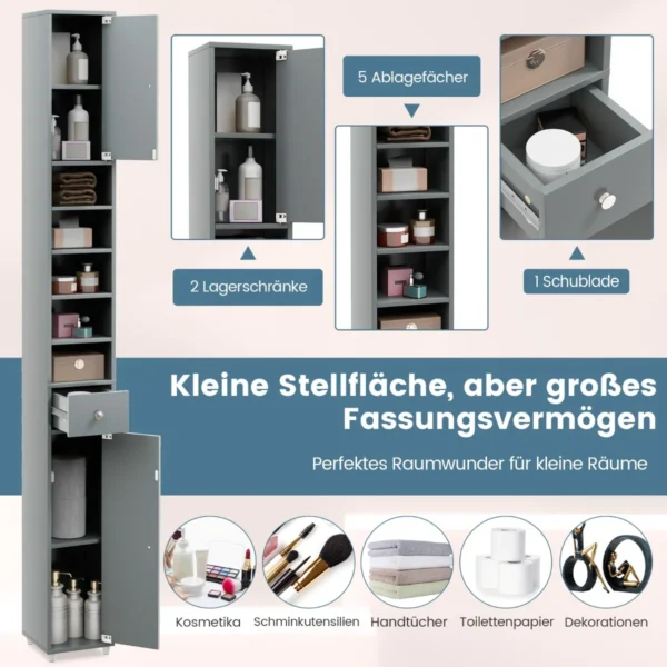 Vonios spintelė 20x20x180cm pilkos spalvos – kompaktiškas ir funkcionalus sprendimas jūsų vonios kambariui. Ši aukšta spintelė leidžia taupyti vietą mažose erdvėse, suteikiant daug vietos įvairiems vonios reikmenims ir kitiems daiktams.