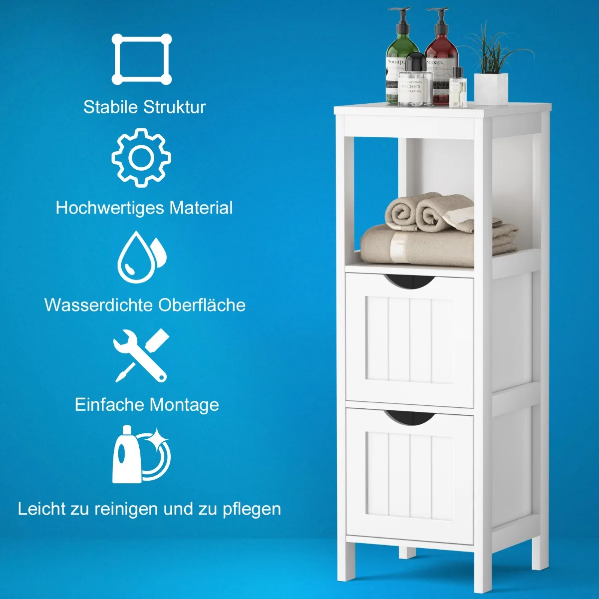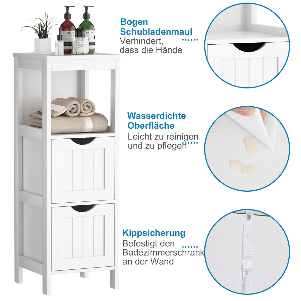 - 2 išimami stalčiai, tinkami įvairiems vonios kambario arba kitų erdvių daiktams laikyti.