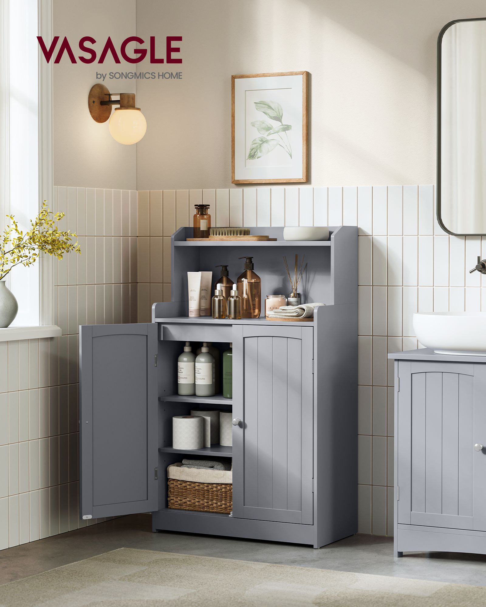 Ši balandžio pilkos spalvos vonios spintelė yra puikus pasirinkimas jūsų vonios kambariui. Jos elegantiškas dizainas ir funkcionalumas suteikia stiliaus ir praktiškumo jūsų interjerui.