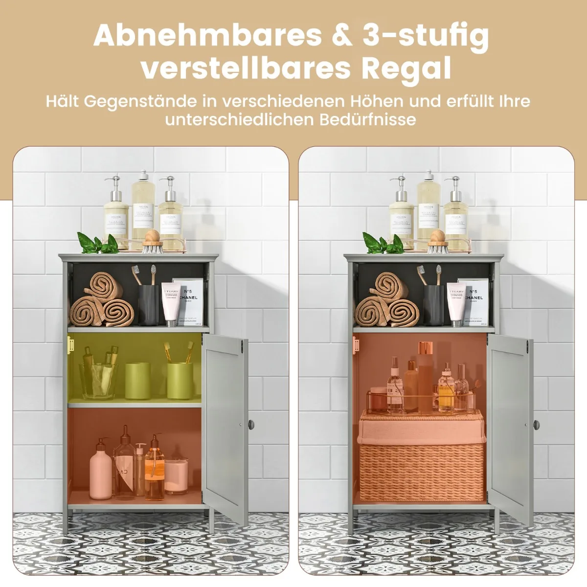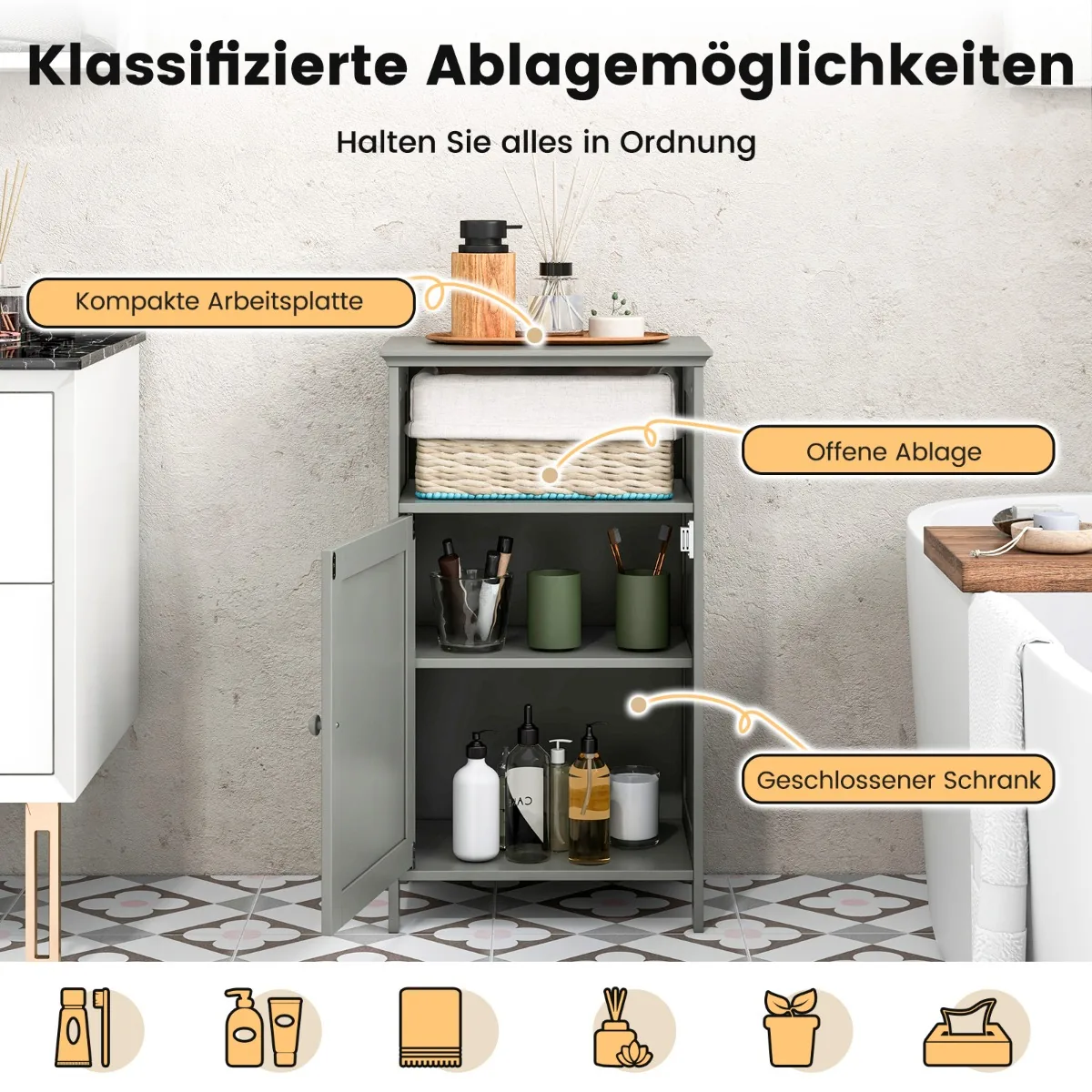 - Grindų spintelė su atvira ir uždara saugojimo erdve, tinkama voniai, virtuvei, svetainei, miegamajam ar koridoriui.