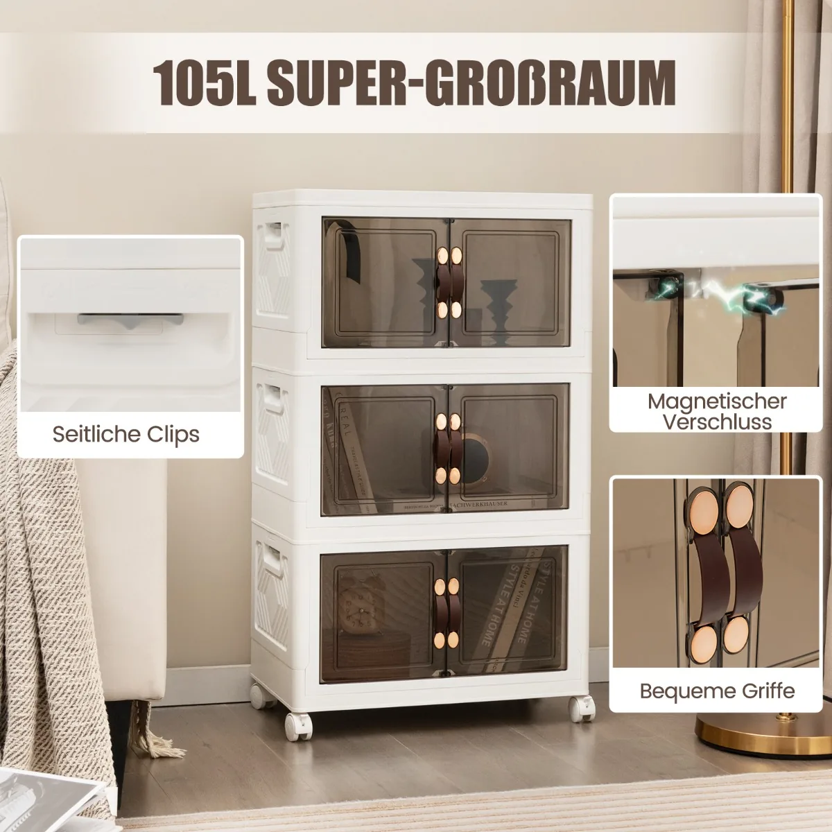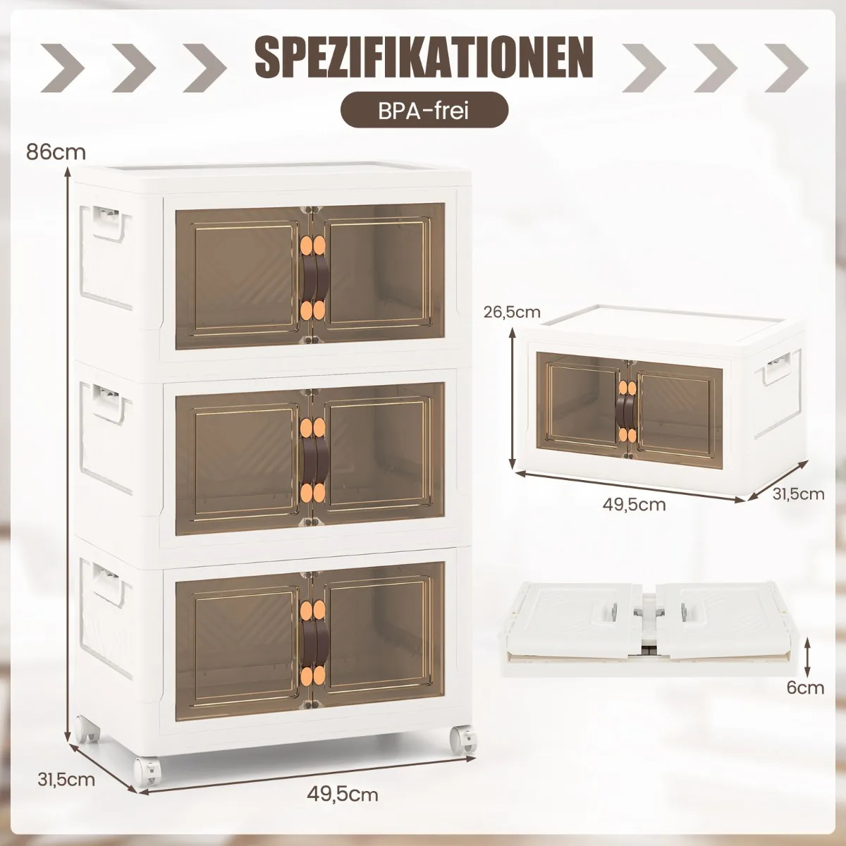 - Laisvai sukraunamos ir išimamų dėžių konstrukcija užtikrina patogų naudojimą bei galimybę sutaupyti vietos sulankstytas po lova ar sofa.