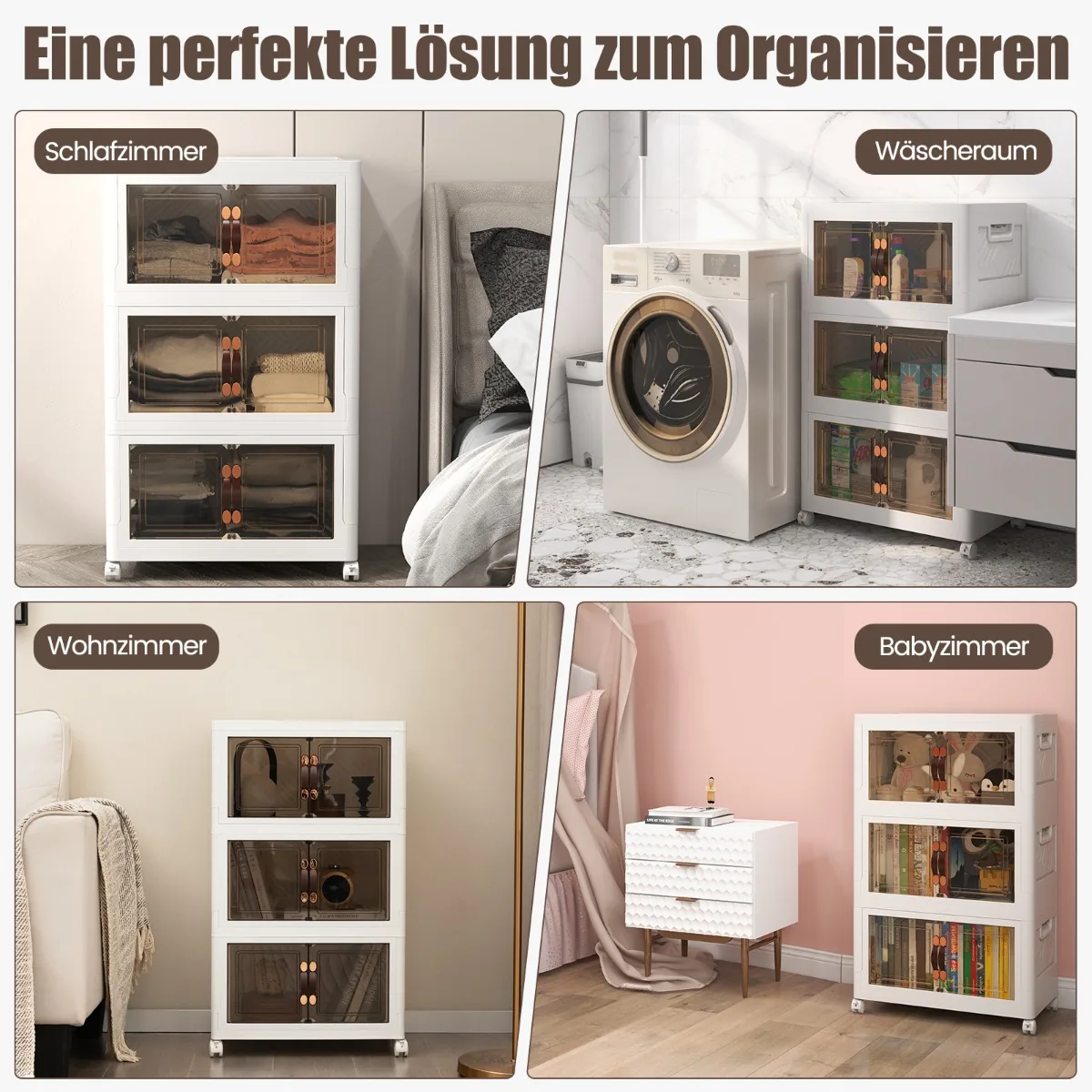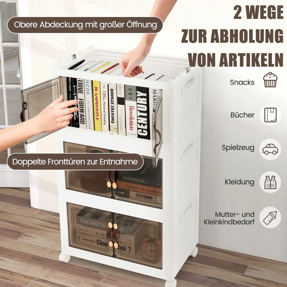 - Keturi universalūs ratai, iš kurių du užrakinami, palengvina spintelės judinimą.