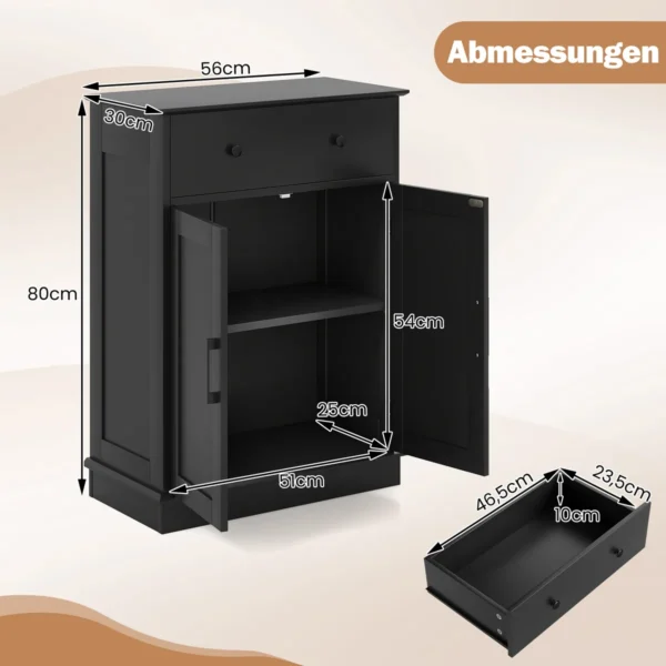 Vonios spintelė 56x30x80cm juodos spalvos yra praktiškas sprendimas vonios kambariui ar kitoms namų patalpoms. Ji suteikia pakankamai vietos saugojimui ir padeda palaikyti tvarką įvairiuose kambariuose. Spintelė pasižymi funkcionalumu, saugumo elementais ir tvirta konstrukcija.
