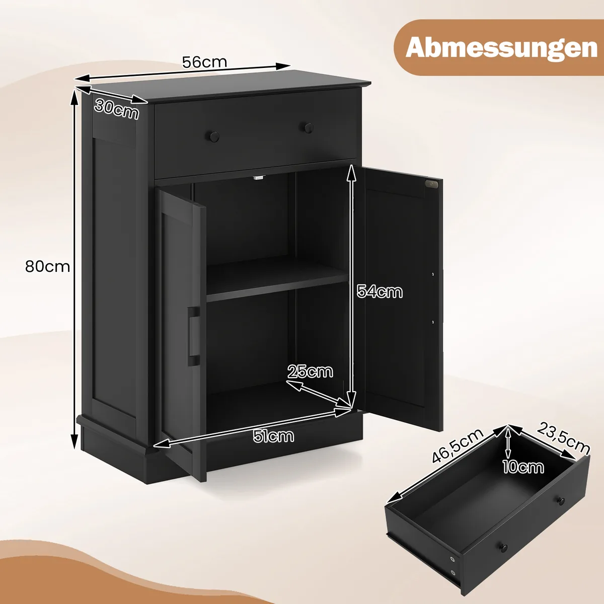 - Bendri matmenys: 56 x 30 x 80 cm (I x P x A)