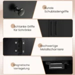 - Tvirta konstrukcija su metaliniais stalčių slankikliais bei magnetiniu fiksatoriumi užtikrina sklandų naudojimą.