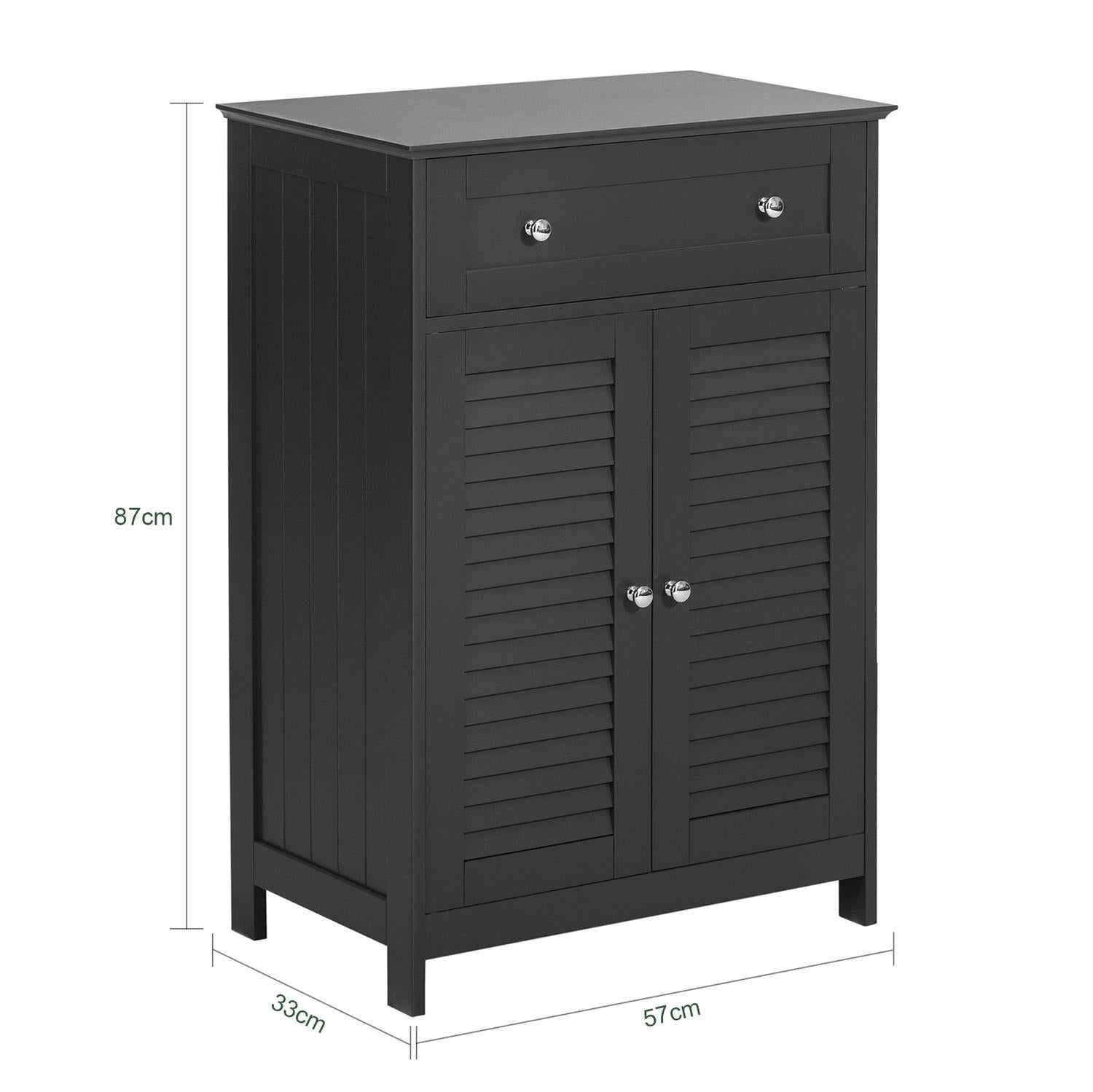 Ši vonios spintelė 57x33x87 cm, juodos/sidabrinės spalvos, yra puikus pasirinkimas jūsų vonios kambariui. Jos elegantiškas dizainas leidžia lengvai priderinti prie įvairių interjero stilių ir patenkinti skirtingus poreikius.