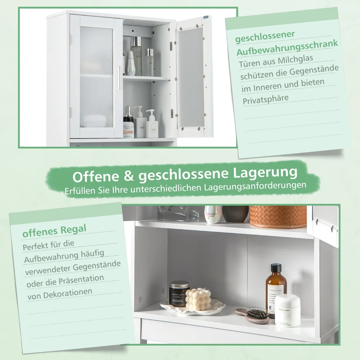 - Turi uždarą spintelę ir atvirą lentyną dažnai naudojamiems daiktams ar dekoracijoms.