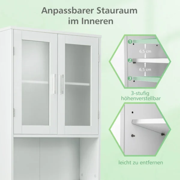 - Spintelės viduje esanti lentyna reguliuojasi į tris skirtingus aukščius, pritaikoma įvairiems daiktams.