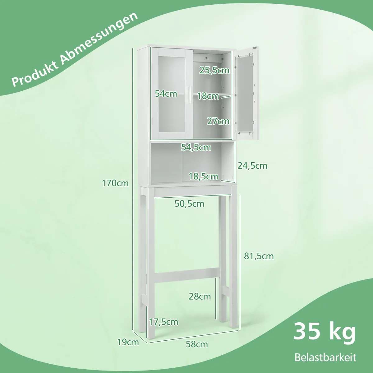 Vonios spintelė 58x19x170cm, baltos spalvos, yra praktiškas sprendimas vonios kambario erdvės organizavimui. Ši kompaktiška spintelė efektyviai išnaudoja sieną virš unitazo, suteikdama papildomos vietos daiktams laikyti, neužimant daug grindų ploto. Tinka mažiems vonios kambariams, kur svarbus erdvės taupymas ir funkcionalumas.
