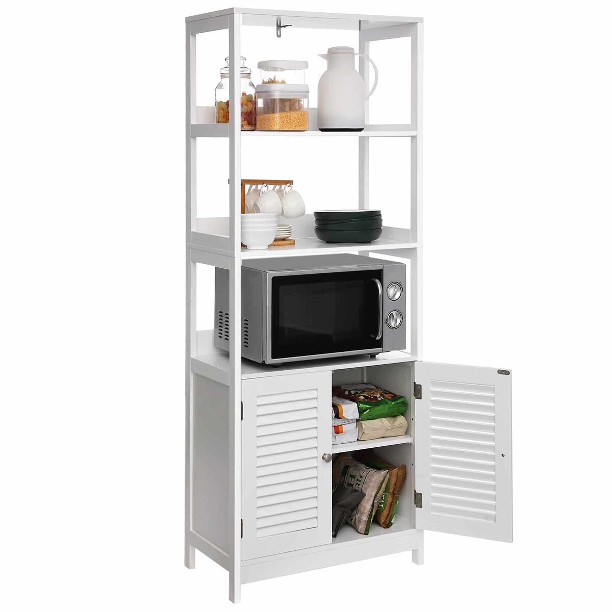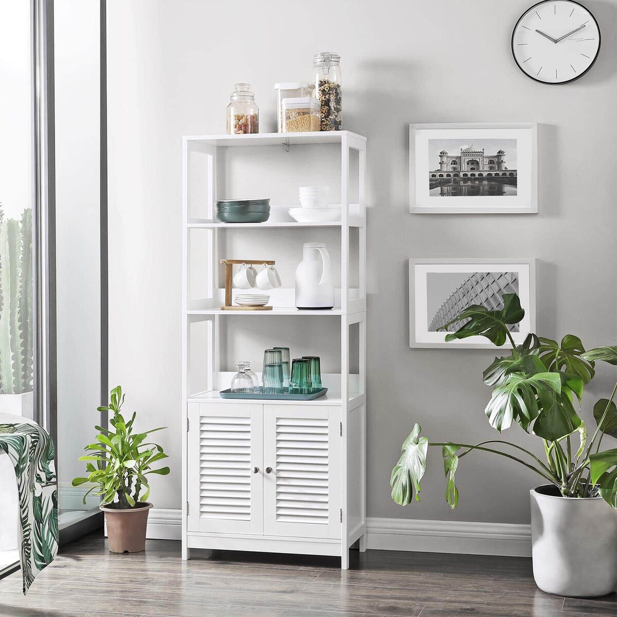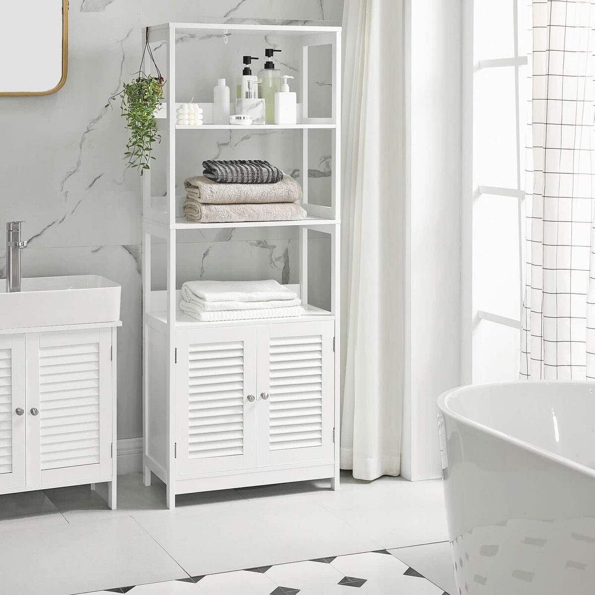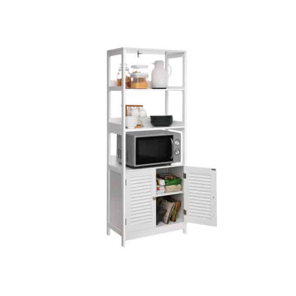 Tikras universalus baldas: daugiau nei tik vonios spintelė! Šis baldas taip pat tinka jūsų virtuvėje mikrobangų krosnelei ir puodams laikyti, o svetainėje – knygoms ir paveikslų rėmams. Arba naudokite šią spintelę koridoriuje, kad galėtumėte lengvai pasiekti raktus ir pinigines. Koks jūsų planas?