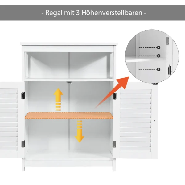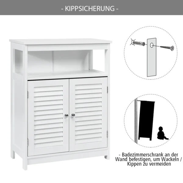 Vonios spintelė 60×30,5×80 cm, baltos spalvos – praktiškas sprendimas vonios kambariui ar kitoms namų erdvėms. Spintelė pagaminta iš P2 MDF plokščių, todėl yra tvirta ir atspari drėgmei. Dėl savo kompaktiškų matmenų puikiai tinka saugoti įvairius vonios reikmenis ir kitus daiktus.