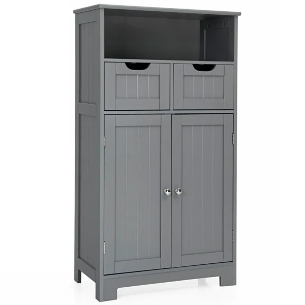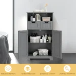 Vonios spintelė 60x30x109cm pilkos spalvos yra praktiškas sprendimas efektyviam daiktų laikymui vonios kambaryje ar kituose kambariuose. Jos konstrukcija iš MDF plokščių užtikrina stabilumą ir ilgaamžiškumą, o reguliuojamos lentynos leidžia pritaikyti saugojimo vietą pagal poreikį.