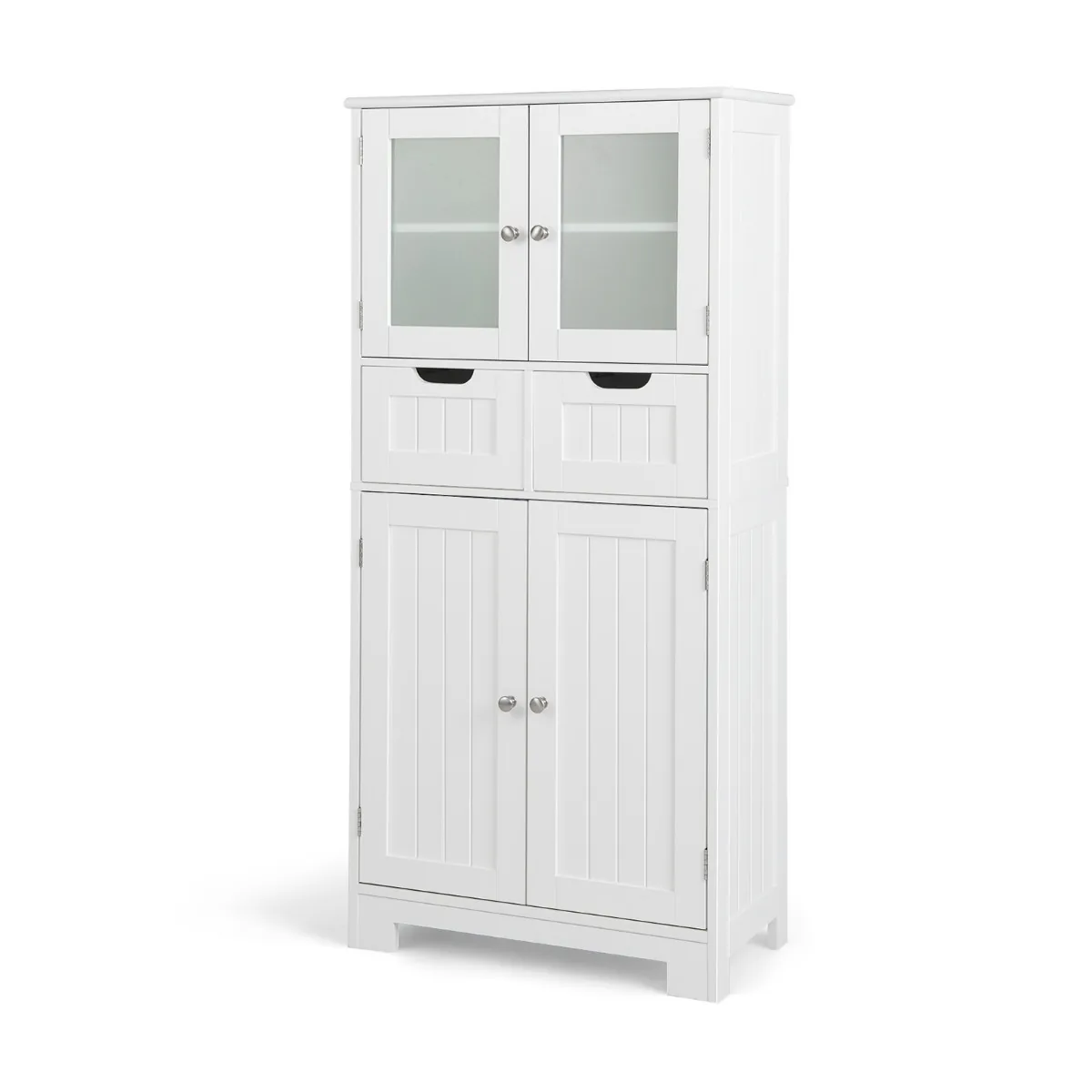 - Pagaminta iš MDF medžiagos su lakuotu paviršiumi ir grūdinto stiklo durelėmis.