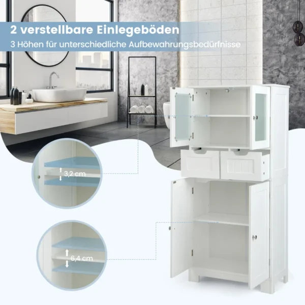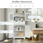 Vonios spintelė 60x30x128 cm, baltos spalvos, – praktiškas sprendimas vonios kambario ar kitų patalpų tvarkai palaikyti. Laisvai statoma spintelė suteikia daug vietos įvairių daiktų laikymui, o jos baltas dizainas lengvai priderinamas prie įvairių interjerų.