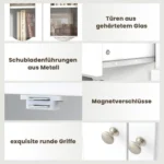 • Spintelė su dvejomis grūdinto matinio stiklo durimis, kurios suteikia privatumo ir elegancijos.