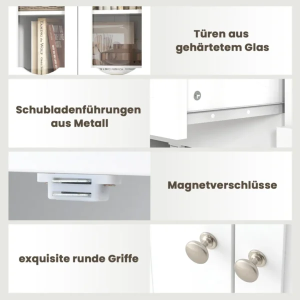 • 2 grūdinto matinio stiklo durys su magnetiniais užsegimais.