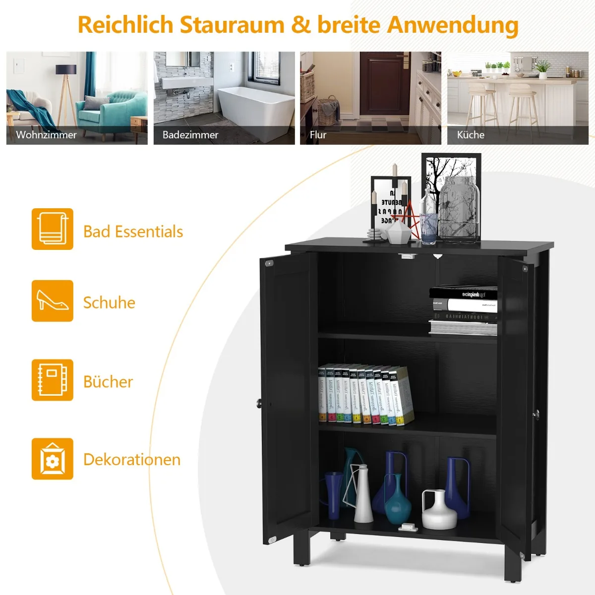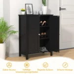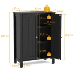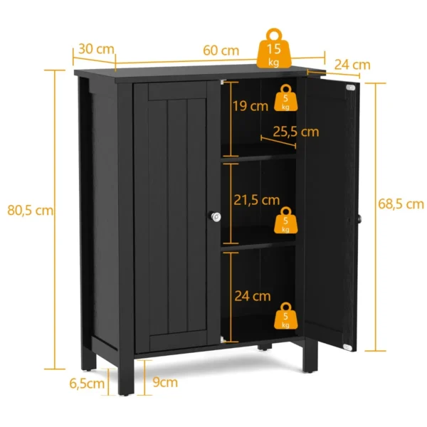 Vonios spintelė 60x30x80,5 cm juodos spalvos yra praktiškas sprendimas vonios kambario erdvės tvarkai palaikyti. Pagaminta iš MDF ir dirbtinės medienos, spintelė užtikrina tvirtumą bei ilgaamžiškumą. Reguliuojamos lentynos leidžia optimaliai išdėstyti būtinas priemones.