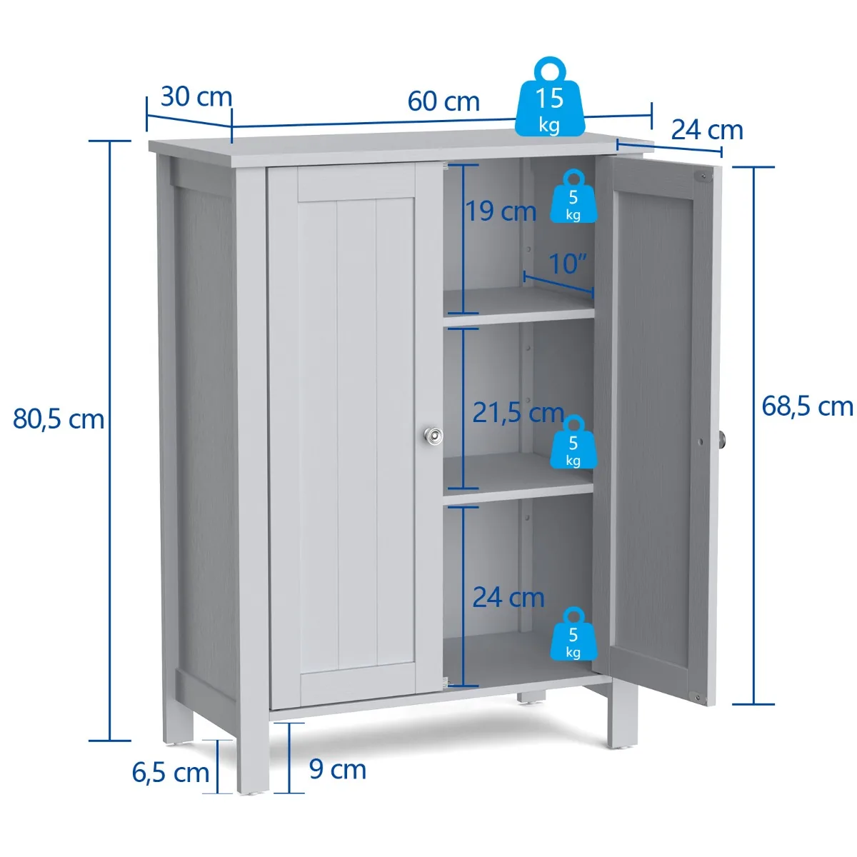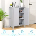 Vonios spintelė 60x30x80,5 cm pilkos spalvos – praktiškas sprendimas vonios kambario tvarkai palaikyti. Pagaminta iš MDF ir dirbtinės medienos, ši spintelė užtikrina tvirtumą ir patvarumą. Reguliuojamos lentynos padeda optimaliai išnaudoti erdvę įvairiems vonios reikmenims, rankšluosčiams ar kosmetikai.