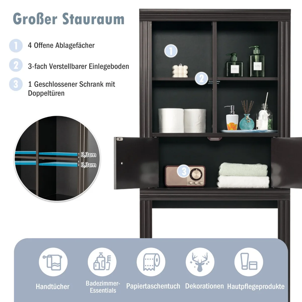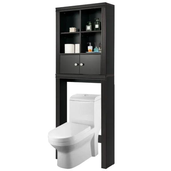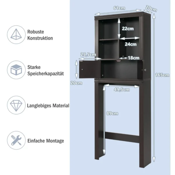 Vonios spintelė 61x20x165cm, tamsiai rudos spalvos, puikiai tinka efektyviam vietos panaudojimui vonios kambaryje. Ši spintelė sukurta saugiam ir patogiam vonios reikmenų, rankšluosčių ir kitų smulkių daiktų laikymui virš tualeto.