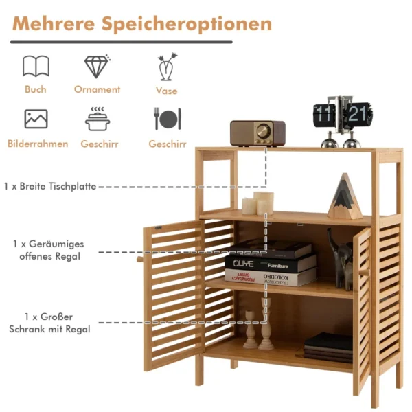 Vonios spintelė 64×27,5x80cm, šviesiai rudos spalvos – praktiškas sprendimas vonios kambario erdvės sutvarkymui. Pagaminta iš bambuko su vandeniui atsparia apdaila, ji suteikia pakankamai vietos įvairiems vonios reikmenims laikyti ir padeda palaikyti tvarką.