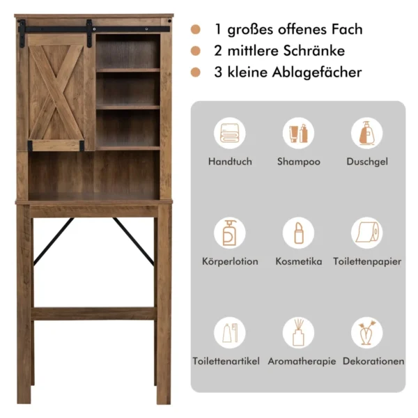 Vonios spintelė 67x25x172cm rudos spalvos yra praktiškas sprendimas vonios kambario erdvei sutvarkyti. Laisvai pastatoma spintelė su stumdomomis durimis suteikia funkcionalią saugojimo vietą vonios reikmenims, tokiems kaip rankšluosčiai, šampūnai ar kūno losjonai. Vertikalus dizainas padeda sutaupyti vietos net ir mažesniuose vonios kambariuose.