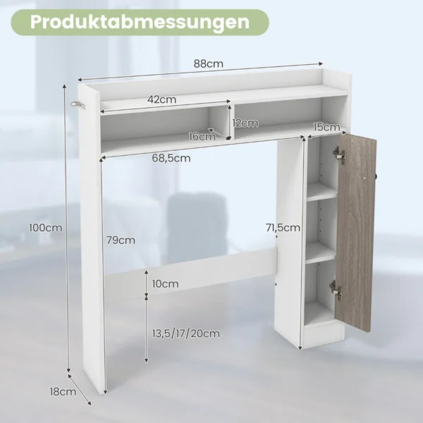 Vonios spintelė 88x18x100 cm balta yra išmanus sprendimas vonios kambario erdvės organizavimui ir daiktų laikymui. Ši virš tualeto pastatoma spintelė leidžia efektyviai išnaudoti nepanaudotą vietą, suteikiant pakankamai saugojimo galimybių net ir mažame vonios kambaryje.
