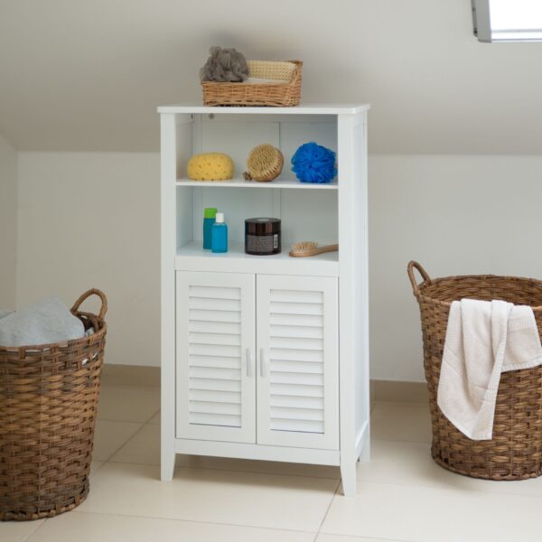 Pristatome elegantišką ir funkcionalią vonios spintelę, kuri taps puikiu jūsų namų interjero akcentu. Ši balta spintelė, pagaminta iš aukštos kokybės bambuko, yra ne tik stilinga, bet ir praktiška, puikiai tinkanti įvairioms patalpoms.