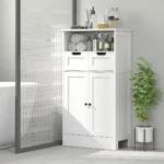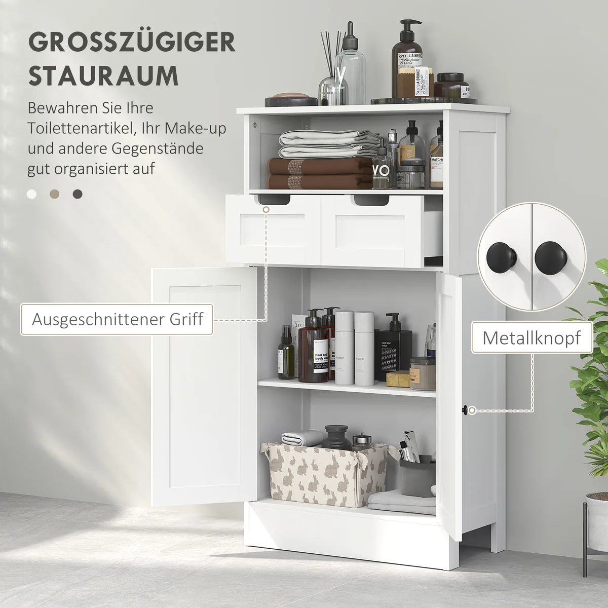 Išplėskite savo sandėliavimo erdvę su elegantiška kleankin vonios kambario spintele. Pagaminti iš aukštos kokybės MDF ir nudažyti švelnia balta spalva, šie vonios kambario baldai dera stabilumu ir stiliumi. Su atviru skyriumi, dviem praktiškais stalčiais ir erdviu spintelės skyriumi su reguliuojama lentyna šoninėje spintelėje rasite vietos visiems vonios reikmenims – nuo muilų iki rankšluosčių. Universalus, jis taip pat gali tarnauti kaip stilinga knygų lentyna svetainėje. Mėgaukitės tvarka ir elegancija savo namuose!