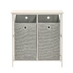 Ši vonios spintelė su 2 skalbinių krepšeliais yra puikus sprendimas jūsų skalbinių organizavimui ir laikymui. Jos pilkos ir baltos spalvos dizainas puikiai dera prie bet kokio interjero, suteikdamas modernumo ir tvarkos pojūtį.