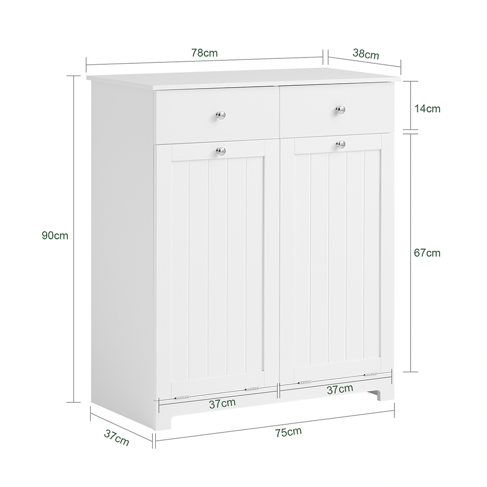 Du atskiri skyriai leidžia patogiai rūšiuoti baltus ir spalvotus skalbinius. Be to, skalbinių krepšelius galima lengvai nuimti, todėl skalbinių transportavimas tampa itin paprastas. Sulankstoma konstrukcija užtikrina vietos taupymą, kai spintelė nenaudojama.