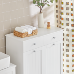 Ši vonios spintelė su 2 skalbinių krepšeliais yra puikus pasirinkimas moderniam interjerui. Jos koncisa ir elegantiška dizaino linija suteikia šiuolaikiškumo bet kuriam kambariui. Dėl erdvių skyrių, ši skalbinių spintelė puikiai tinka šeimoms, kuriose skalbinių kiekis greitai auga.