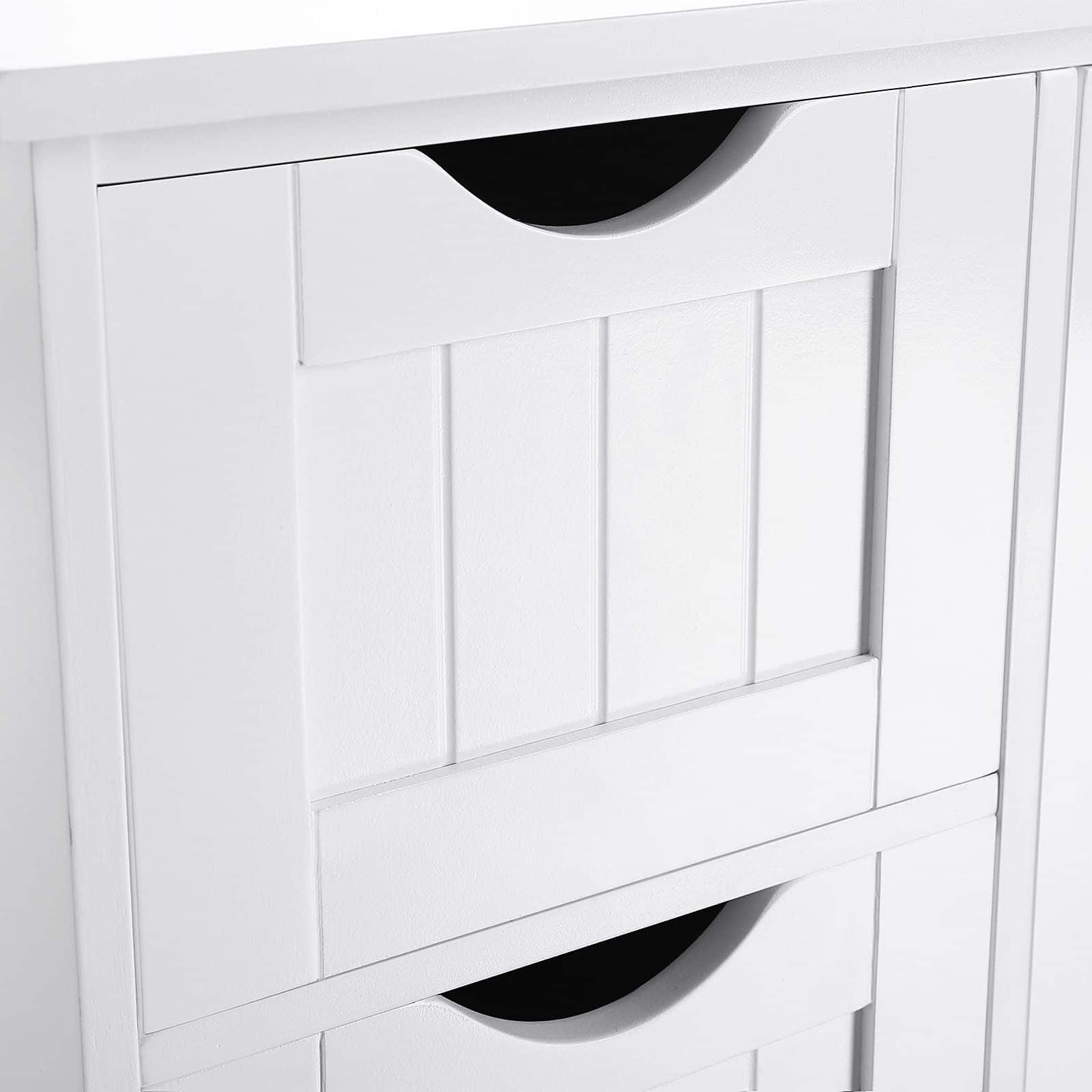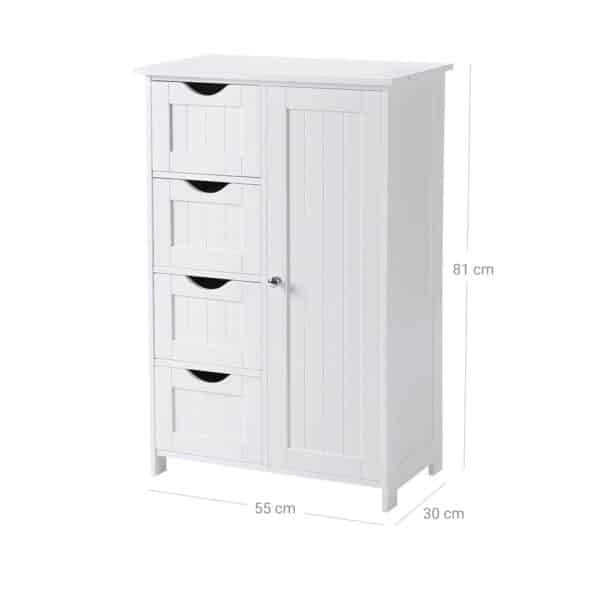 Ar visada visus tualeto reikmenis išbarstote visame vonios kambaryje? Ar trūksta tinkamos vietos jiems laikyti? Čia yra praktiškas sprendimas – ši vonios spintelė iš VASAGLE! Suvaldysite netvarką 4 giliuose stalčiuose ir 2 dideliuose skyreliuose už spintelės durų. Galėsite rūšiuoti rankšluosčius, dušo butelius, valymo priemones, tualetinį popierių ir kt., ir viską sukrauti taip, kad liktų paslėpta nuo akių. Taigi jums nereikės jaudintis, kad jūsų vonios kambarys greitai vėl atrodys netvarkingas.